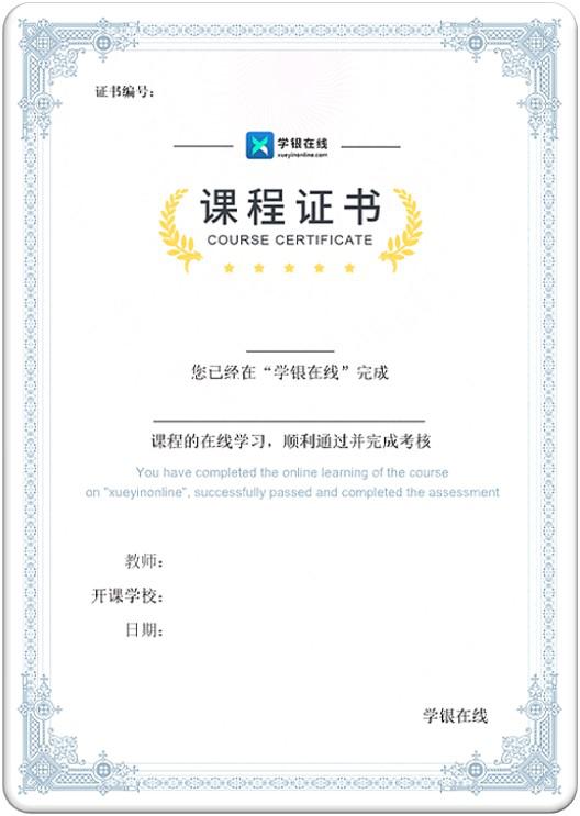 按课程公告中的考核要求学习完本课程之后,您将获得由课程团队和学银在线平台共同颁发的课程证书。