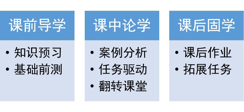 合理设置教学流程,课前导学利用学习平台精心布置学习任务进行知识预习和基础前测;课中论学精准聚焦重点难点,通过案例分析、任务驱动、翻转课堂等多种方式促进知识内化;课后固学课后作业、拓展任务进行知识能力及素质延伸。