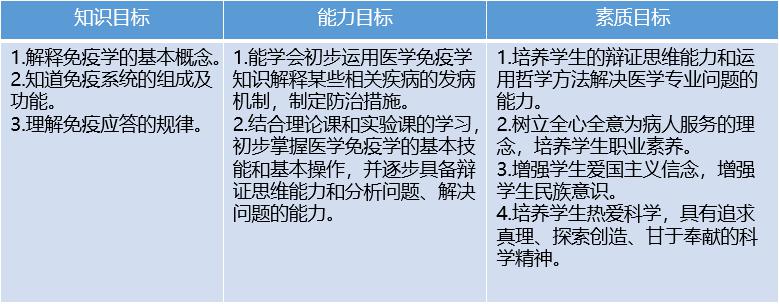 医学免疫学是医学院校各专业学生的一门必修课,也是医学各专业研究生最重要的选修课程之一。医学免疫学的教学目标如下: