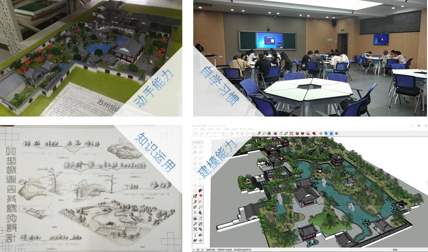 同时,老师平常参与项目,在施工过程中,把施工现场的情况直播给学生,让学生提前“参与”园林历史到园林工程的过度,把“平面式”教学转变到“立体式三维”教学中。