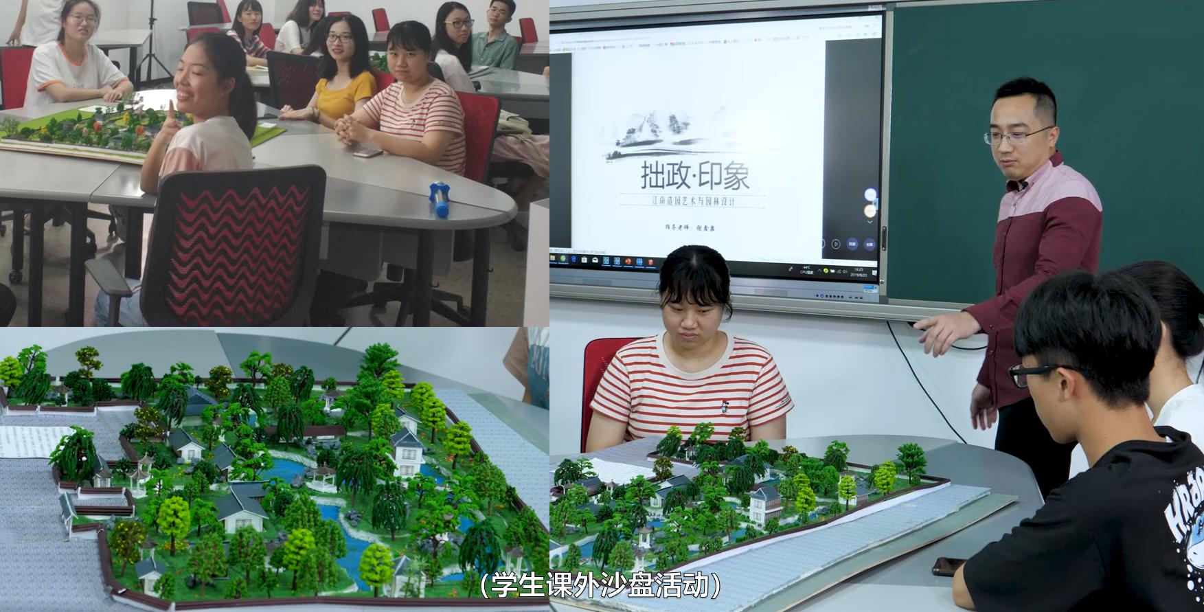 本课程除了用动画、视频、各种四维软件等进行教学,还有特色就是古典园林的“沙盘活动”、“茶花会直播活动”、“茶花会直播活动”。学生动手参与制作“园林模型(园林沙盘)”,在动手过程中认知园林建筑以及其他构建的比例,感受古典园林“烫样”与现代园林“模型”的异同,理解园林空间,锻炼学生的尺度感觉。学生通过“茶花会直播活动”不仅能促进校园友情,还能提升自我展示和表达能力,提搞民族文化认同感。
